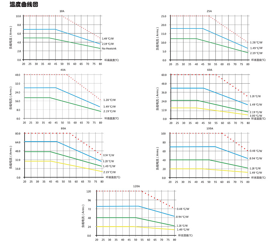 ◆工作電流10A以上的產(chǎn)品必須安裝散熱器,繼電器與散熱器之問加上導(dǎo)熱硅脂才能良好散熱,散熱器表面溫度接近60°C時應(yīng)強(qiáng)迫風(fēng)冷。